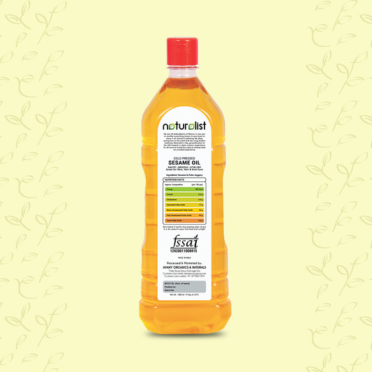 Naturalist Cold Pressed Sesame/Gingelly Oil | Chekku/Ghani/Virgin Oil | Unrefined | 100% Natural | Cooking / Massage / Hair Care / Oral Care Oil - 1 Litre