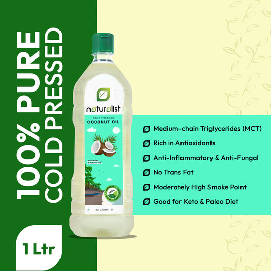 Naturalist Cold Pressed Coconut Oil | Chekku/Ghani/Virgin Oil | Unrefined | 100% Natural | Cooking / Massage / Hair Care Oil - 1 Litre